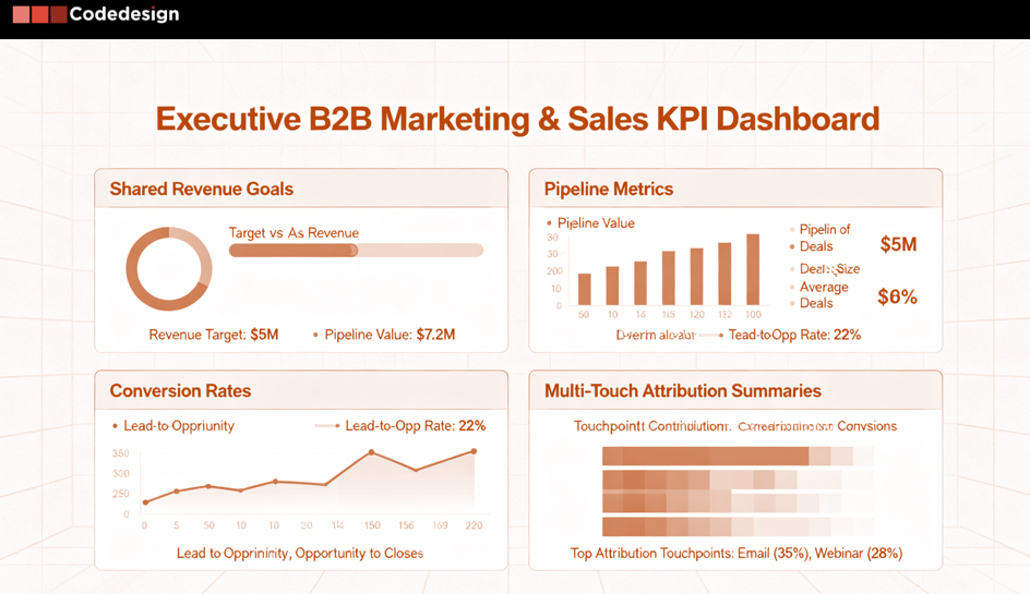 Imagine a revenue dashboard where marketing and sales teams crowd around the same numbers—ROMI, pipeline contribution, lead-to-revenue conversion rates. No finger-pointing, just mutual KPIs linked to actual business growth.