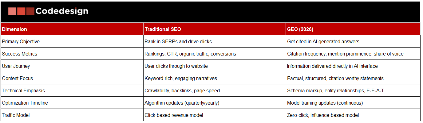 Generative Engine Optimization represents a categorical departure from traditional search engine optimization, not merely an incremental evolution. The distinction lies in how users obtain information and how content creators achieve visibility. Traditional SEO operates on a click-through model where success is measured by ranking position, organic traffic volume, and conversion rates derived from website visits. The user journey follows a predictable pattern: query submission, results page scanning, link selection, website visitation, and information consumption. This model has governed digital marketing strategy for over two decades and has shaped content creation, technical infrastructure, and measurement frameworks across the entire industry.