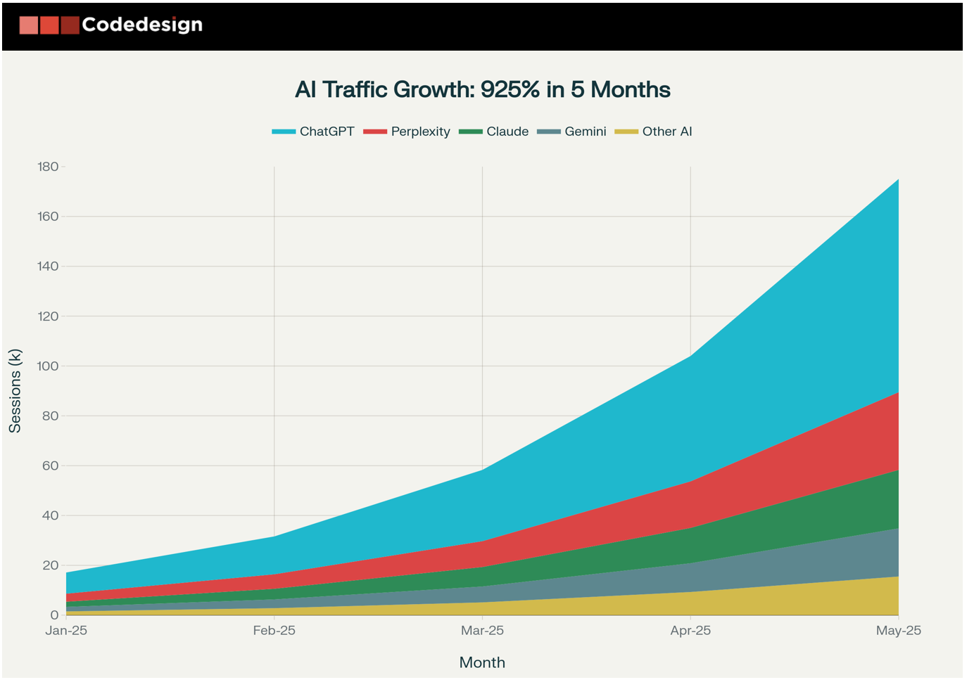 The urgency stems from irrefutable quantitative evidence. Analysis of 19 Google Analytics 4 properties revealed that AI-sourced traffic from platforms like ChatGPT, Perplexity, Claude, and Gemini increased 527% between January and May 2025 alone. ChatGPT reached 400 million weekly active users by February 2025, with some enterprise websites now deriving over 1% of total sessions from large language model referrals. Meanwhile, Gartner's prediction that traditional search engine volume will decline 25% by 2026 is no longer speculative but observable in real-time traffic patterns.