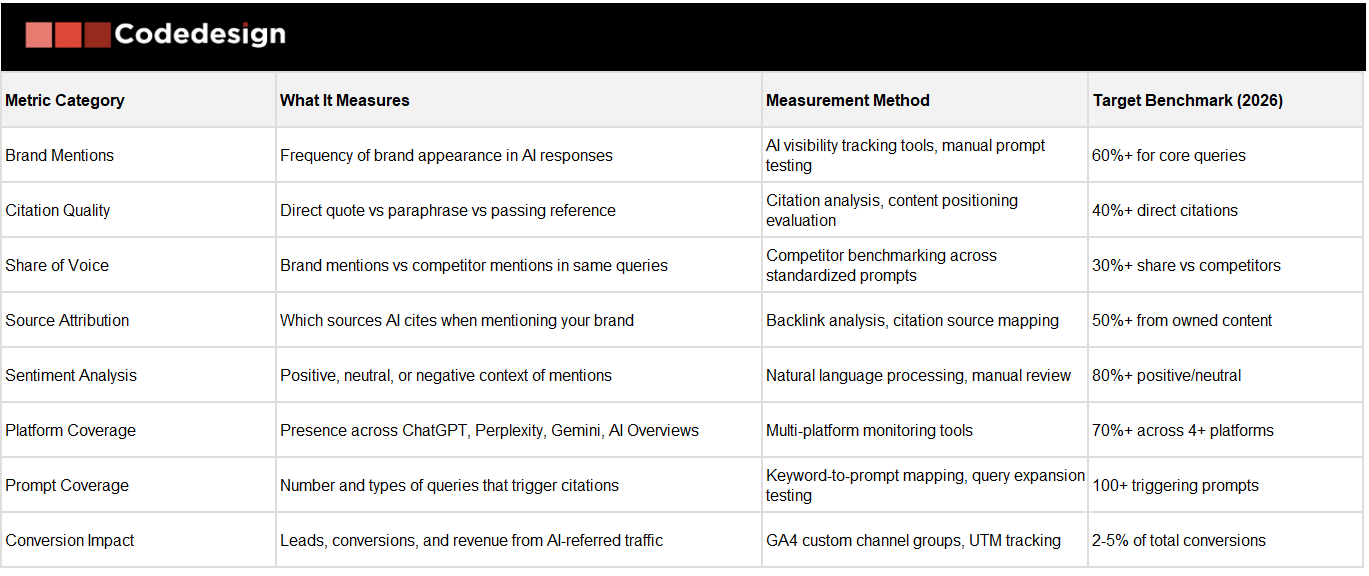 The transition from traditional SEO to GEO necessitates fundamental reconceptualization of success metrics and measurement methodologies. Click-through rates, keyword rankings, and organic traffic volumes—the triumvirate of conventional SEO measurement—provide incomplete and potentially misleading indicators of AI-era performance. Organizations optimizing exclusively for these legacy metrics risk strategic misdirection, investing resources in tactics that improve traditional search visibility while failing to establish presence in the AI-generated responses increasingly dominating user experience. Comprehensive AI visibility measurement requires multi-dimensional frameworks tracking brand mentions, citation quality, share of voice, source attribution, sentiment, platform coverage, prompt coverage, and conversion impact.