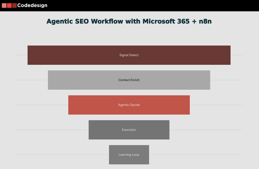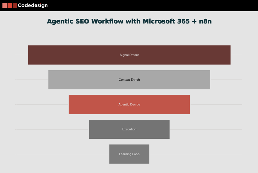 With Microsoft 365 + n8n, the structure of SEO and performance workflows can look more like a loop than a line.