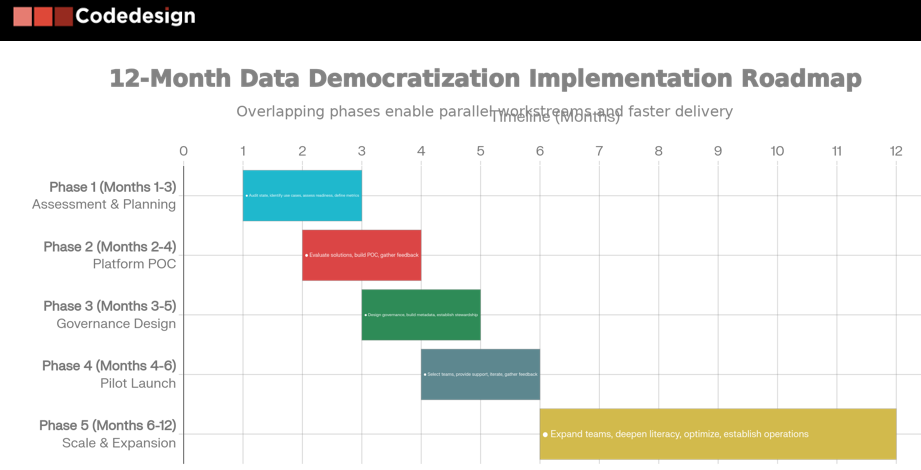The challenge: Organizations often struggle to balance governance—either becoming so restrictive that democratization never happens, or so permissive that compliance and security risks emerge.