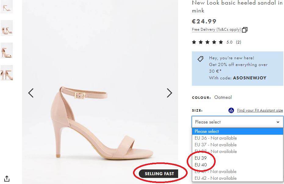 Like these shoes on ASOS. They were available in sizes from 36-42 but they are so popular, only two sizes are left. And they made sure to inform customers that this model is selling out fast.